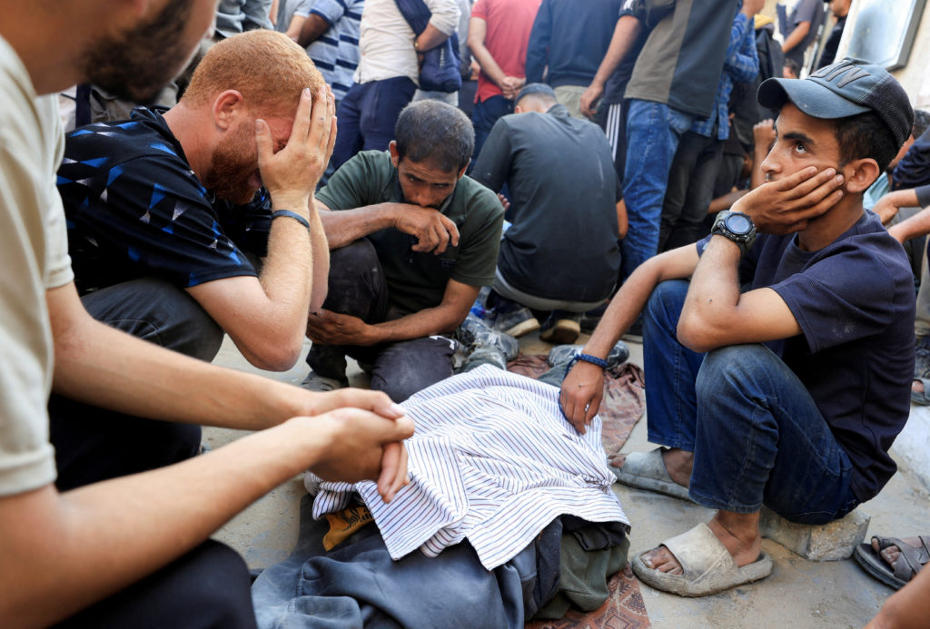 “My children, my children … my beloved,” sobbed Intisar Abu Assi as she wept over the bodies of her son, daughters, and their young children laid out at Nasser Hospital in Khan Younis.