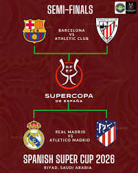 RIYADH, Saudi Arabia (BN24) — The Royal Spanish Football Federation has officially announced the semi-final matchups for the 2025 Spanish Super Cup, with defending champions Barcelona set to play Athletic Club and arch-rivals Real Madrid facing Atletico Madrid in an all-Madrid derby.