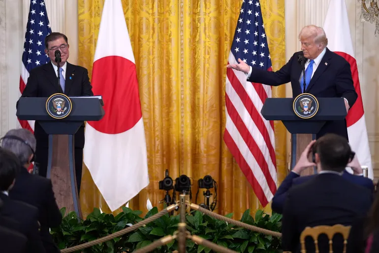 WASHINGTON (BN24) — President Donald Trump on Tuesday unveiled what he described as a “massive” new trade agreement with Japan, marking the conclusion of months of tense negotiations and ushering in a new phase in U.S.-Japan economic relations. The deal includes a 15 percent tariff on Japanese exports and a sweeping $550 billion investment pledge from Tokyo.