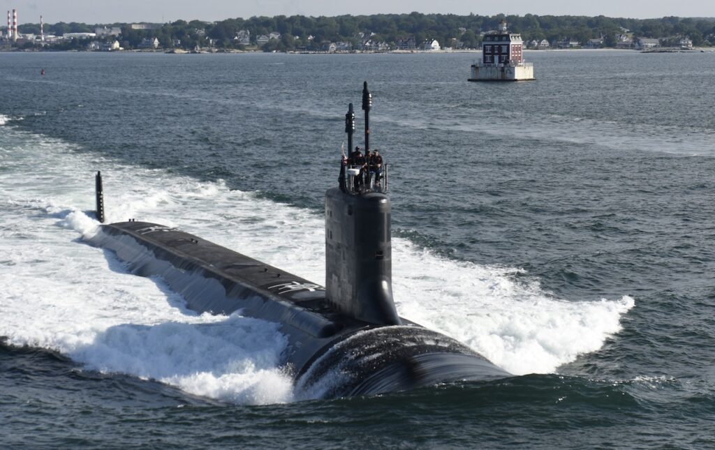160801-O-N0101-111 GROTON, Conn. (Aug. 1, 2016) The future Virginia-class attack submarine USS Illinois (SSN 786) conducts sea trials. Illinois is a flexible, multi-mission platform designed to carry out the seven core competencies of the submarine force: anti-submarine warfare; anti-surface warfare; delivery of special operations forces; strike warfare; irregular warfare; intelligence, surveillance and reconnaissance; and mine warfare. (U.S. Navy photo courtesy of General Dynamics Electric Boat/Released)