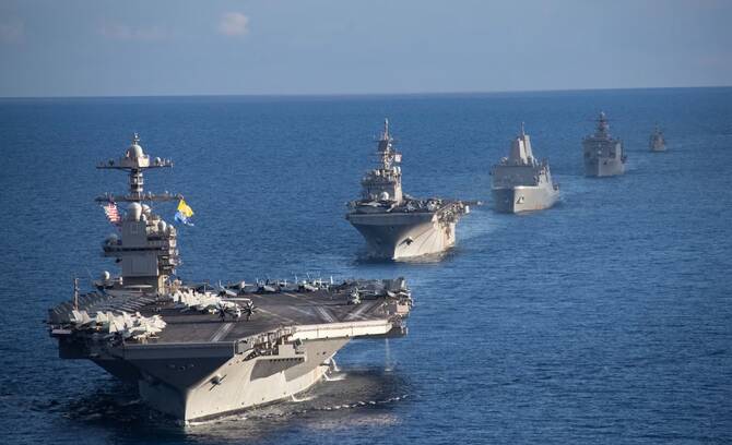 The carrier group will join eight U.S. vessels that are already in the region, including three destroyers, one cruiser, a littoral combat ship, an amphibious assault ship and two transport ships.